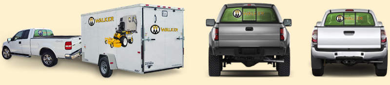 Do you have an enclosed trailer, rear truck window or large area for attaching full color Walker photos or a graphic? Walker provides large photos and the Walker Mowers graphic free of charge for Walker distributors, dealers and end-users.